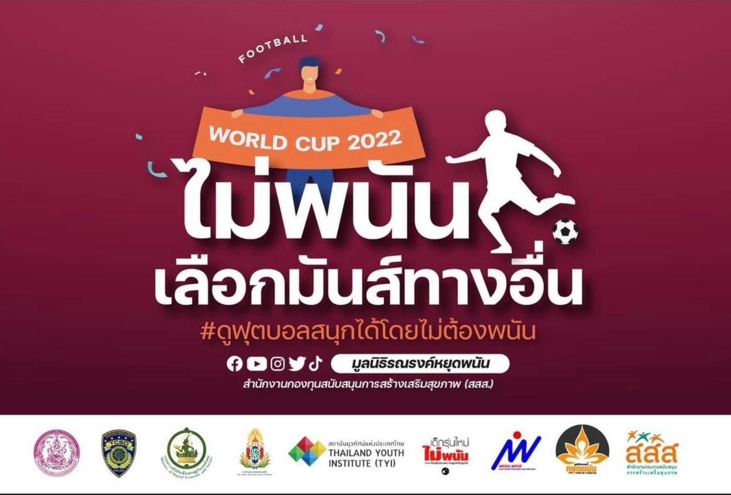 21 พ.ย. 2565 11:38:34“ฟุตบอลโลก 2022” ... ตำรวจภูธรภาค 3 รณรงค์ไม่พนันฟุตบอลโลก ห่วงเยาวชนและประชาชนที่อาจเข้าไปในวังวนของการพนันฟุตบอล ที่มากับการแข่งขันฟุตบอลโลก . โดยข้อมูลจาก "ศูนย์ศึกษาปัญหาการพนัน" พบว่า . ในปี 2564 พบว่า คนไทยเป็นคอพนันบอล ประมาณเกือบ 4 ล้านคน วงเงินหมุนเวียนสูงถึง 180,000 ล้านบาท ซึ่งเป็นพนันที...