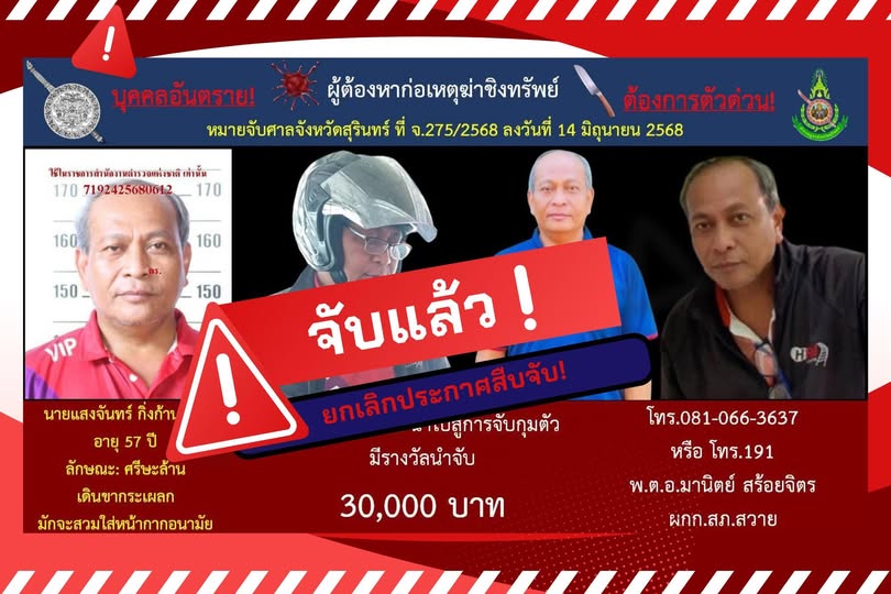 18 มิ.ย. 2568 15:18:59พลังโซเชียล!!!🤝🤝👀👀 🚨🤩สถานีตำรวจภูธรสวาย ขอขอบคุณทุกภาคส่วนที่เกี่ยวข้อง โดยเฉพาะพี่น้องชาวโซเซียลที่ช่วยกันแชร์กระหน่ำ จนในที่สุดมีพลเมืองดี🤩👍แจ้งข่าวมาว่า พบนายแสงจันทร์ฯ 🌕🌕 สุดท้ายจนมุม จนท.จึงเข้าจับกุม ⛓️💥⛓️💥 ปิดเกมส์ ที่ 🚔🚛สถานีขนส่งร้อยเอ็ด(101) #สถานีตำรวจภูธรสวาย ตำรวจภูธรจังหวัดสุรินทร...