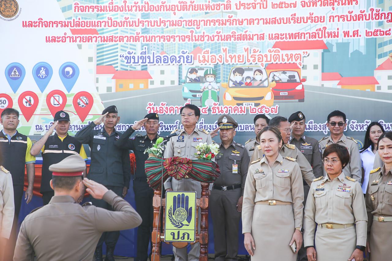 24 ธ.ค. 2567 16:55:51ภ.จว.สุรินทร์ ร่วมกิจกรรมเนื่องในวันป้องกันอุบัติภัยแห่งชาติ ประจำปี 2567 จังหวัดสุรินทร์, ร่วมปล่อยแถวป้องกันปราบปรามอาชญากรรมรักษาความสงบเรียบร้อย การบังคับใช้กฎหมาย และอำนวยความสะดวกด้านการจราจรในช่วงวันคริสต์มาส และเทศกาลปีใหม่ พ.ศ.2568 โดยร่วมปล่อยขบวนรณรงค์ป้องกันและลดอุบัติเหตุทางถนน "ขับขี่ป...