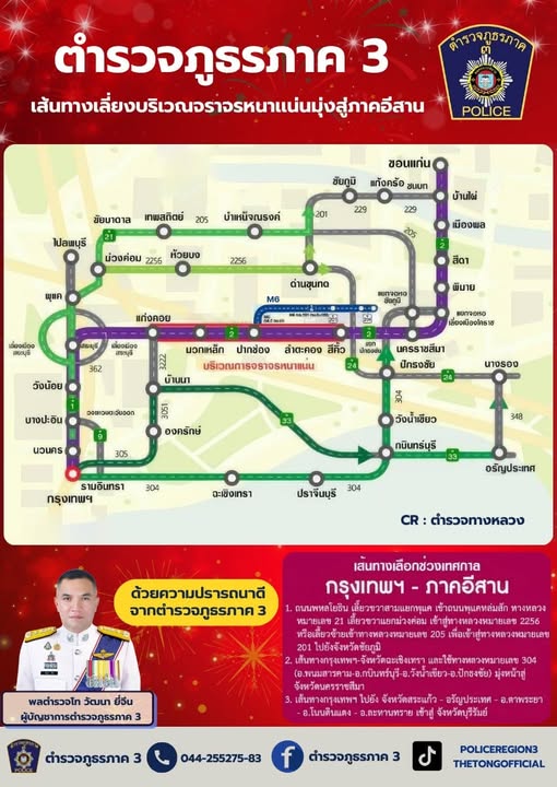 24 ธ.ค. 2567 17:27:06เซฟเก็บไว้และช่วยกันแชร์ ✅ . 🚘 เส้นทางเลี่ยง-ทางเลือก เดินทางกลับภาคอีสานในช่วงเทศกาลปีใหม่ 2568 🎉 . ❤️ ขอให้ทุกท่านเดินทางโดยสวัสดิภาพ ตำรวจจะช่วยดูแลความปลอดภัยและอำนวยความสะดวกการจราจรตลอด 24 ชม. 🏘️ . 👮🏼♀️ด้วยความปรารถนาดีจากตำรวจภูธรภาค 3 #ตำรวจภูธรจังหวัดสุรินทร์...