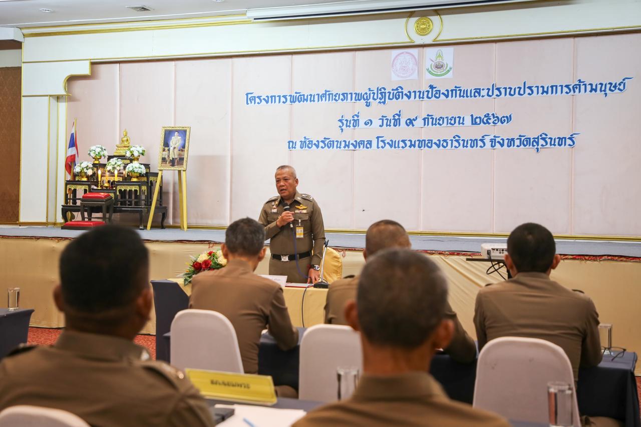 11 ก.ย. 2567 17:13:11การฝึกอบรม โครงการพัฒนาผู้ปฏิบัติงานป้องกันและปราบปรามการค้ามนุษย์ วันที่ 9 ก.ย. 67 เวลา 09.00 น. พล.ต.ต.สุคนธ์ ศรีอรุณ ผบก.ภ.จว.สุรินทร์ เป็นประธานเปิดการฝึกอบรม โครงการพัฒนาผู้ปฏิบัติงานป้องกันและปราบปรามการค้ามนุษย์ รุ่นที่ 1 และร่วมเป็นวิทยากรบรรยายพิเศษ “นโยบายและยุทธศาสตร์การป้องกันปราบปรามกา...