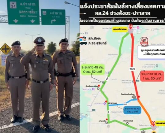 2 ม.ค. 2569 09:54:08🕹️พ.ต.อ.วีระพันธ์ ณ ลำปาง รองผู้บังคับการตำรวจภูธรจังหวัดสุรินทร์ และ พ.ต.อ.กรธัช อู๊ดเจริญ ผู้กำกับการสถานีตำรวจภูธรสังขะ แจ้งประชาสัมพันธ์แนะนำให้พี่น้องประชาชาชนที่จะเดินทางมาจาก จ.อุบลราชธานี หรือ จ.ศรีสะเกษ ผ่านมายัง จ.สุรินทร์ ให้ใช้ทางเลี่ยงช่วงเทศกาลปีใหม่ บนถนนทางหลวง 24 ตรงบริเวณแยกหนองยาว...