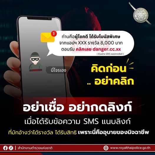 13 มิ.ย. 2567 09:26:38คิดก่อน ‼️ อย่าคลิกลิงก์ มุกมิจฉาชีพ หลอกว่าเป็น “ผู้โชคดี” ได้เงิน โบนัส รางวัล สิทธิต่าง ๆ ที่แท้เป็นกลลวงหลอกให้กดลิงก์อันตราย⚠️ มิจฉาชีพจะดูดเงินจากบัญชี หรือแชตชักชวนทำกิจกรรมลุ้นเงินจำนวนมาก ชวนลงทุน ( ซึ่งไม่มีอยู่จริง ) ชวนเล่นพนันออนไลน์ หลากหลายอุบายเพื่อลวงให้โอนเงิน 📢 ไม่เชื่อ ไม่คลิก ไ...