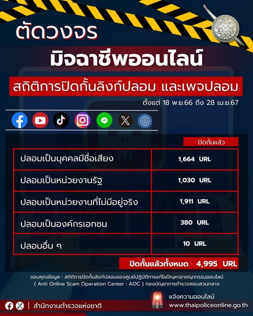 1 พ.ค. 2567 10:15:17🚨ตำรวจเดินหน้าตัดวงจรมิจฯ ออนไลน์ ปิดกั้นลิงก์ เพจปลอมหลอกลวงประชาชน . ปัจจุบันมิจฉาชีพใช้สารพัดรูปแบบในการหลอกลวงเหยื่อ โดยมักส่งลิงก์ เปิดเพจเฟซบุ๊ก รวมถึงช่องทางโซเชียลมีเดียต่าง ๆ ปลอม ในการหลอกล่อเข้าถึงเหยื่อ โดยศูนย์ปฏิบัติการแก้ไขปัญหาอาชญากรรมออนไลน์ ( Anti Online Scam Operation Center : AO...