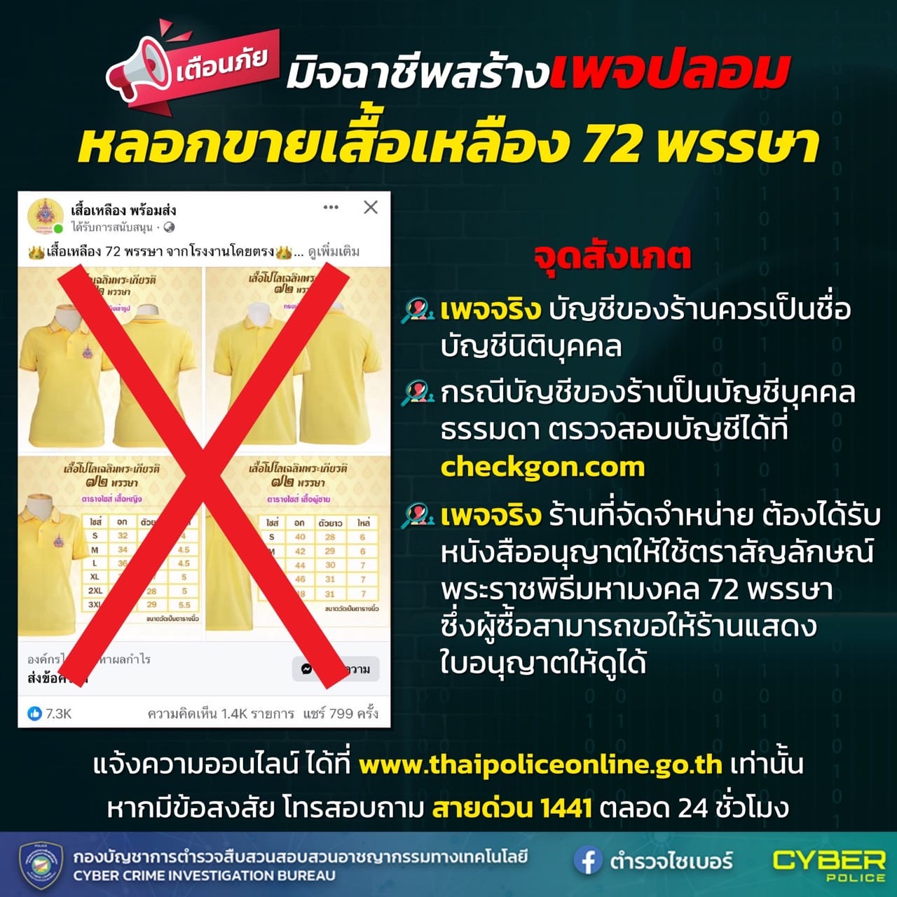11 มี.ค. 2567 12:12:27เตือนภัยพี่น้องข้าราชการ ❗️ เพจปลอมหลอกขายเสื้อเหลืองระบาดหนัก . ตามที่นายกรัฐมนตรี ได้มีนโยบายขอความร่วมมือให้เจ้าหน้าที่หน่วยงานราชการและรัฐวิสาหกิจแต่งกายด้วยเสื้อสีเหลืองที่มีตราสัญลักษณ์พระราชพิธีมหามงคล 72 พรรษา ในทุกวันจันทร์นั้น . ปัจจุบันพบว่า มิจฉาชีพได้ฉวยโอกาสสร้างเพจปลอม หลอกขายเสื้อเหล...
