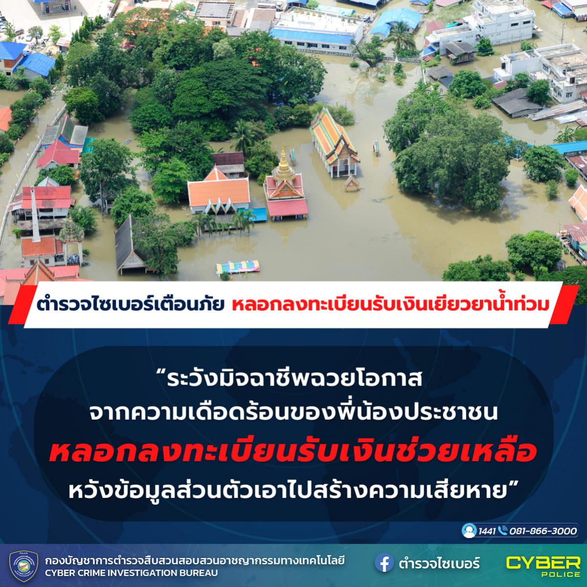 10 ต.ค. 2566 09:32:04เตือนภัย! มิจฉาชีพโพสต์หลอกผู้ประสบภัยน้ำท่วม อ้างให้ลงทะเบียนรับเงินเยียวยา สุดท้ายเสียทั้งน้ำตาเสียทั้งเงิน . ปัจจุบันสถานการณ์อุทกภัยได้เกิดขึ้นหลายพื้นที่ทั่วประเทศไทย ทำให้มีประชาชนได้รับความเดือดร้อนเป็นจำนวนมาก โดยปีที่ผ่านมา บช.สอท. หรือ ตำรวจไซเบอร์ พบว่ามิจฉาชีพได้ฉวยโอกาสนี้ซ้ำเติมความบอบ...