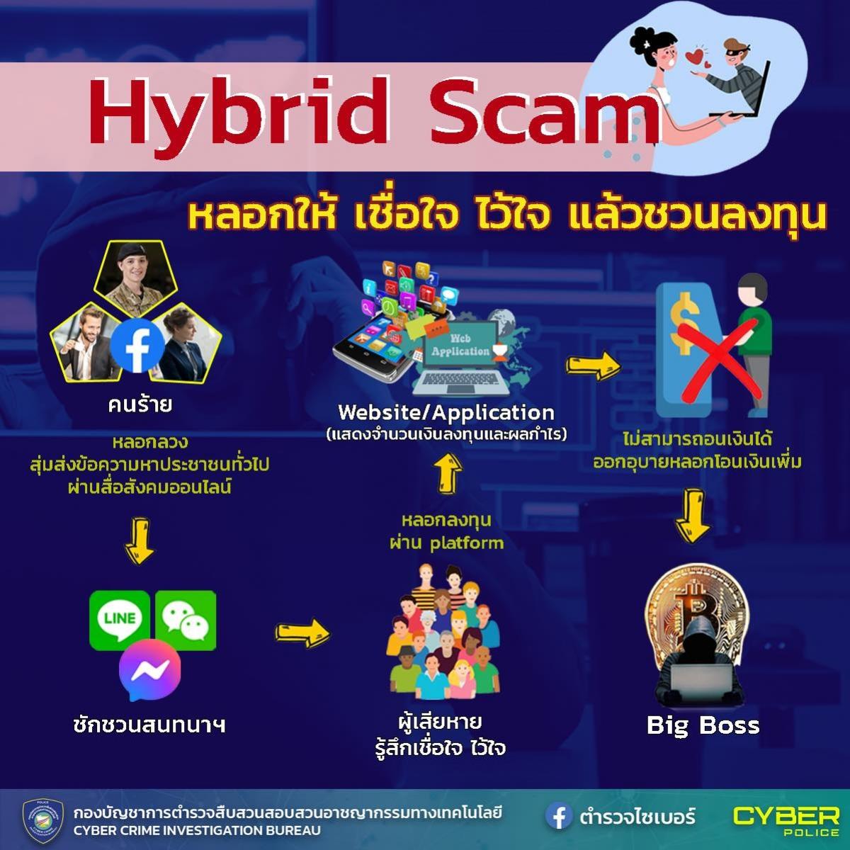 13 ก.ย. 2566 11:11:28🚨Hybrid Scam🚨 "หลอกให้เชื่อใจ ไว้ใจ แล้วชักชวนลงทุน" 📜แผนประทุษกรรมโดยย่อของกลุ่มอาชญากรรมข้ามชาติในคดีหลอกลงทุนสกุลเงินดิจิทัล (Hybrid Scam) "กลุ่มบุคคลที่หลอกลวงประชาชนด้วยวิธีการสุ่มส่งข้อความในช่องทาง “แชท” หาประชาชนทั่วไป . ผ่านช่องทางสื่อสังคมออนไลน์ที่เป็นแบบเปิดกว้าง หรือผ่านช่องทางแอปพลิเ...