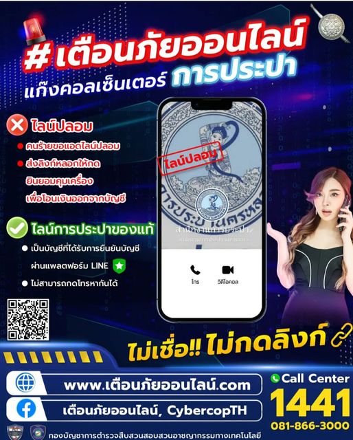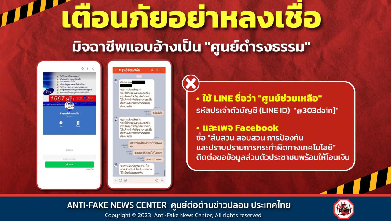 10 พ.ค. 2566 08:01:10#เตือนภัยเพจปลอม มิจฉาชีพแอบอ้าง "ศูนย์ดำรงธรรม กระทรวงมหาดไทย" เพจปลอม จากการตรวจสอบพบเพจ Facebook ชื่อ “ศูนย์ดำรงธรรม” แอบอ้างนำตราสัญลักษณ์ของศูนย์ดำรงธรรม ๑๕๖๗ เป็นรูปภาพประจำตัวและภาพหน้าปก โดยให้ประชาชนแจ้งเบาะแสและหลักฐานประวัติการสนทนา รวมถึงใบแจ้งการโอนเงิน (สลิป) ที่ถูกฉ้อโกง ไปที่บัญชี L...