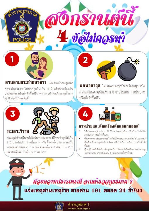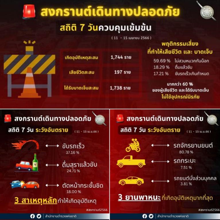 17 เม.ย. 2566 19:29:36จากสถิติ 7 วันระวังอันตราย ควบคุมเข้มข้น พบว่า ช่วงเวลา 19.00 - 20.00 น.เกิดอุบัติเหตุสูงสุด กลับบ้าน เดินทางท่องเที่ยวเทศกาล #สงกรานต์2566 ขับขี่ปลอดภัย เคารพกฎจราจร มีน้ำใจกับเพื่อนร่วมทาง ถึงที่หมายโดยสวัสดิภาพ ด้วยความปรารถนาดี จาก "สำนักงานตำรวจแห่งชาติ" ท่านสามารถขอความช่วยเหลือ แจ้งเหตุได้ตลอ...