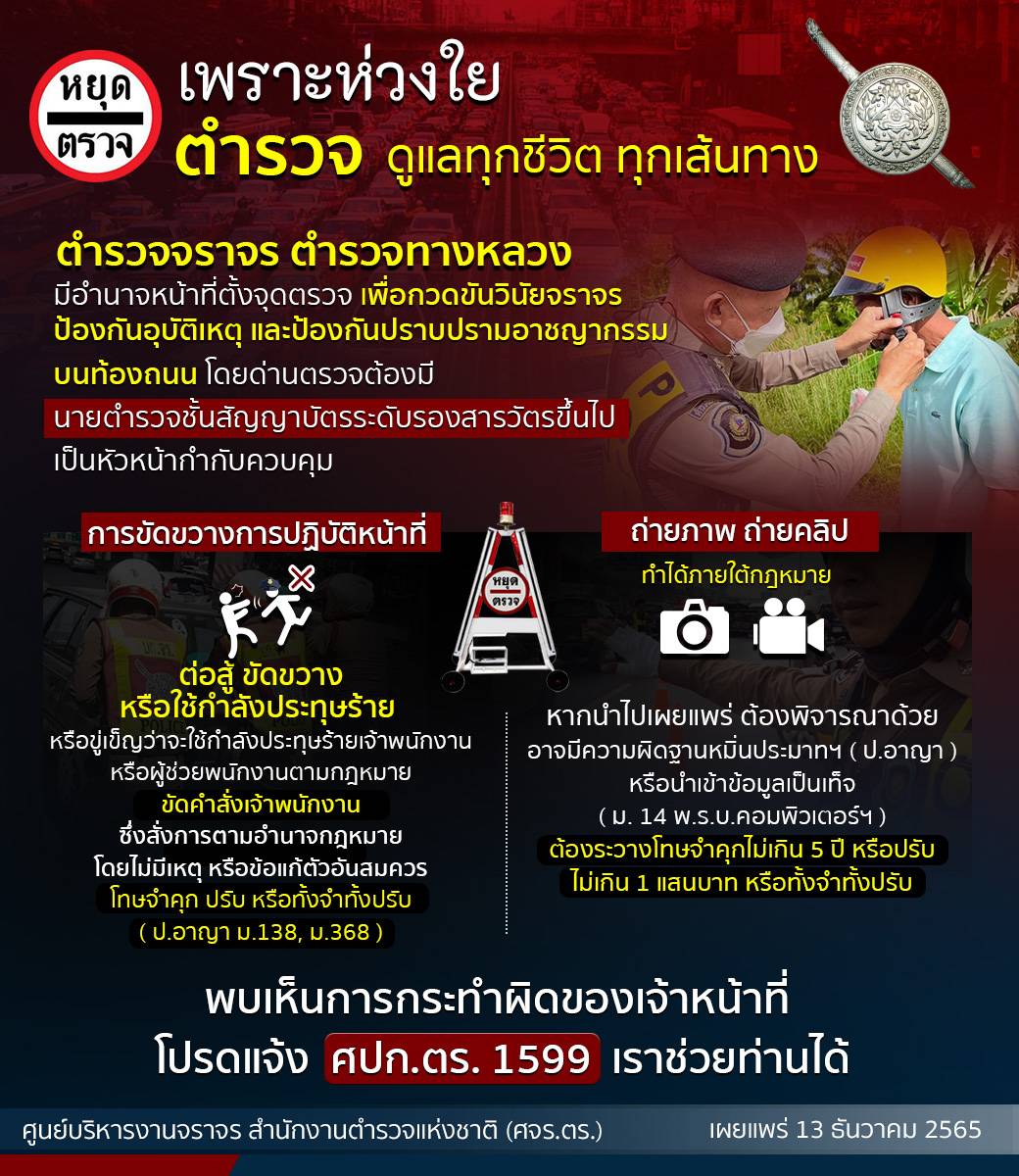 16 ธ.ค. 2565 10:40:11เจอด่านต้องทำอย่างไร! ศจร.ตร. ชี้วิธีสังเกตจุดตรวจกวดขันวินัยจราจรที่ถูกต้อง แนะการถ่ายภาพ – คลิป พิจารณาก่อนแชร์ . พล.ต.ต.นิธิธร จินตกานนท์ รองผู้บัญชาการตำรวจนครบาล ในฐานะหัวหน้าคณะทำงานเสริมสร้างภาพลักษณ์ตำรวจจราจร ศูนย์บริหารงานจราจร สำนักงานตำรวจแห่งชาติ (ศจร.ตร.) แจ้งประชาสัมพันธ์ประชาชน เรื่อ...