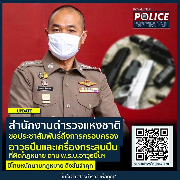 9 ก.ค. 2565 09:51:40สำนักงานตำรวจแห่งชาติ ขอประชาสัมพันธ์ถึงการครอบครองอาวุธปืนและเครื่องกระสุนปืนที่ผิดกฎหมาย ตาม พ.ร.บ.อาวุธปืนฯ มีโทษหนัก ถึงขั้นจำคุก เมื่อวันที่ 9 กรกฎาคม 2565 พ.ต.อ.กฤษณะ พัฒนเจริญ รองโฆษกสำนักงานตำรวจแห่งชาติ ชี้แจงถึงความคืบหน้าการดำเนินคดีที่เกี่ยวข้องกับการครอบครองอาวุธปืนและเครื่องกระสุนปืนท...