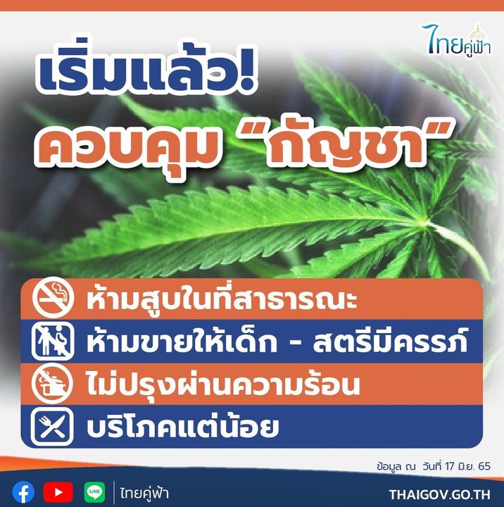 17 มิ.ย. 2565 06:59:01เริ่มแล้ว! ควบคุม “กัญชา” ห้ามสูบในที่สาธารณะ ห้ามขายให้เด็ก - สตรีมีครรภ์ . กระทรวงสาธารณสุข ออกประกาศเรื่อง สมุนไพรควบคุม “กัญชา” โดยมีสาระสำคัญ คือ ห้ามสูบในที่สาธารณะ ห้ามจำหน่ายให้ หรือใช้กับสตรีมีครรภ์ - สตรีให้นมบุตร และห้ามจำหน่ายให้ผู้มีอายุต่ำกว่า 20 ปี มีผลบังคับตั้งแต่วันนี้เป็นต้นไป . ส...