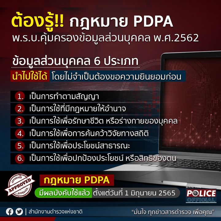 2 มิ.ย. 2565 12:12:38ต้องรู้!! กฎหมาย PDPA ข้อมูลส่วนบุคคล 6 ประเภทนำไปใช้ได้ โดยไม่จำเป็นต้องขอความยินยอมก่อน 1. เป็นการทำตามสัญญา 2. เป็นการใช้ที่มีกฎหมายให้อำนาจ 3. เป็นการใช้เพื่อรักษาชีวิต หรือร่างกายของบุคคล 4. เป็นการใช้เพื่อการค้นคว้าวิจัยทางสถิติ 5. เป็นการใช้เพื่อประโยชน์สาธารณะ 6. เป็นการใช้เพื่อปกป้องประโยช...