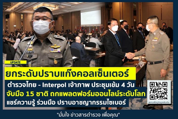 22 พ.ค. 2565 08:15:59ยกระดับปราบแก๊งคอลเซ็นเตอร์ ตำรวจไทย - Interpol เจ้าภาพ ประชุมเข้ม 4 วัน จับมือ 15 ชาติ ถกแพลตฟอร์มออนไลน์ระดับโลก แชร์ความรู้ ร่วมมือ ปราบอาชญากรรมไซเบอร์ การประชุม Cybercrime Conference for Law Enforcement Agencies and Partners หรือการประชุมอาชญากรรมไซเบอร์สำหรับหน่วยงานบังคับใช้กฎหมายและหุ้นส่วน...