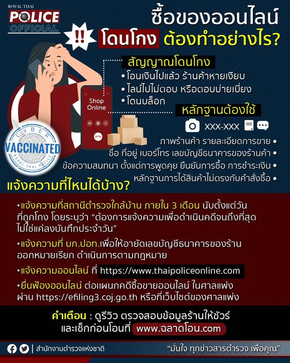 4 พ.ค. 2565 12:37:53รู้หรือไม่!! ภัยชอปปิงออนไลน์ ซื้อของแล้วไม่ได้รับสินค้า ถูกร้องเรียนผ่านช่องทางแจ้งความออนไลน์ ของสำนักงานตำรวจแห่งชาติ สูงสุดเป็นอันดับ 1 โอนเงินแล้ว ไม่ได้ของ สินค้าไม่ตรงปก สั่งอย่างได้อีกอย่าง เช่น สั่งซื้อโทรศัพท์มือถือ ได้ปลากระป๋อง สั่งซื้อต้นบอนสี ได้ลูกอม หากซื้อของออนไลน์ หากพลาดโดนโกง ต้...
