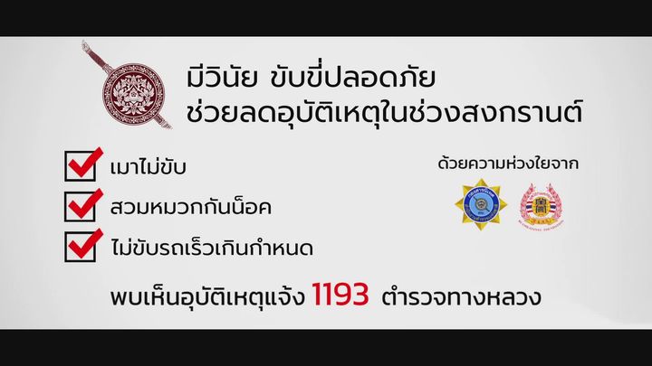 8 เม.ย. 2565 06:32:40#ความในใจ อีกหนึ่งความห่วงใย ในช่วงเทศกาลสงกรานต์ 2565 จาก สำนักงานตำรวจแห่งชาติ และ ตำรวจสุรินทร์ #ตำรวจสุรินทร์ สำนักงานตำรวจแห่งชาติ โดย ศูนย์บริหารงานจราจร(ศจร.ตร.) และ กองสารนิเทศ ได้จัดทำสปอตรณรงค์เพื่อปลูกจิตสำนึกให้คนไทยทุกคน ตระหนักถึงความสูญเสียจากอุบัติเหตุ โดยเน้นให้ประชาชน “มีวินัย ขั...
