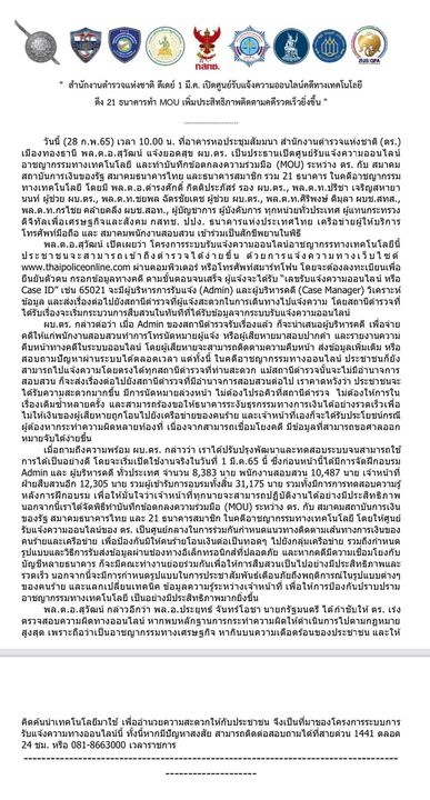 1 มี.ค. 2565 09:33:381.ผู้แจ้งลงทะเบียนเพื่อยืนยันตัวตน กรอกข้อมูลทางคดีตามขั้นตอนจนเสร็จ ผู้แจ้งจะได้รับ “เลขรับแจ้งความออนไลน์ หรือ Case ID” เช่น 65021 2.จะมีผู้บริหารการรับแจ้ง(Admin) และผู้บริหารคดี(Case Manager) วิเคราะหฺข้อมูลและส่งเรื่องต่อไปยังสถานนีตำรวจที่ผู้แจ้งสะดวกในการเดินทางไปแจ้งความ โดยสถานีตำรวจที่ได้ร...