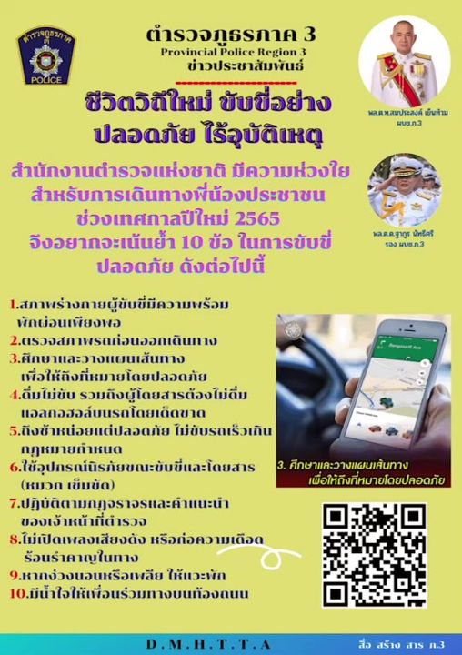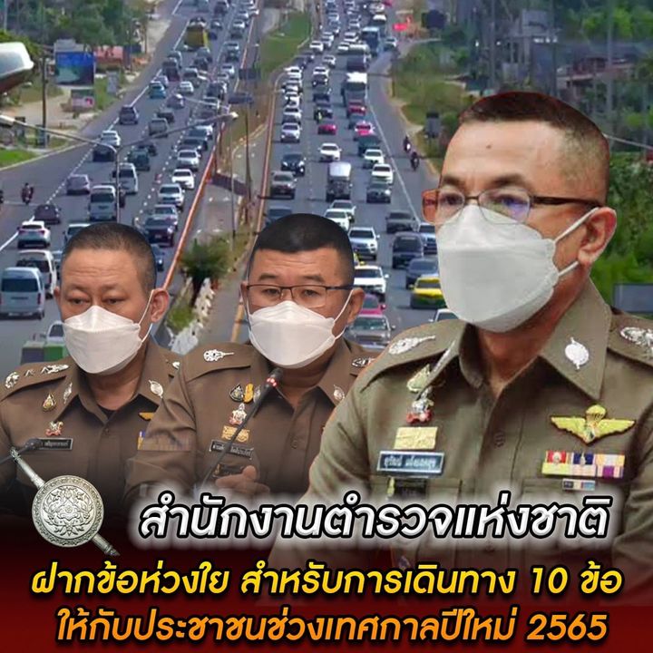26 ธ.ค. 2564 12:23:21สำนักงานตำรวจแห่งชาติ มีความห่วงใย สำหรับการเดินทางพี่น้องประชาชน ช่วงเทศกาลปีใหม่ 2565 จึงอยากจะเน้นย้ำ 10 ข้อ ในการขับขี่ปลอดภัย ดังต่อไปนี้ 1.สภาพร่างกายผู้ขับขี่มีความพร้อม พักผ่อนเพียงพอ 2.ตรวจสภาพรถก่อนออกเดินทาง 3.ศึกษาและวางแผนเส้นทาง เพื่อให้ถึงที่หมายโดยปลอดภัย 4.ดื่มไม่ขับ รวมถึงผู้โดยสา...